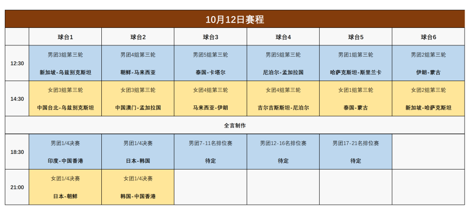 接下来10月12日将继续团体第一阶段的比赛,但晚上开始将迎来第二阶段的对决以及部分排位赛,其中4场8强大战的安排如下: